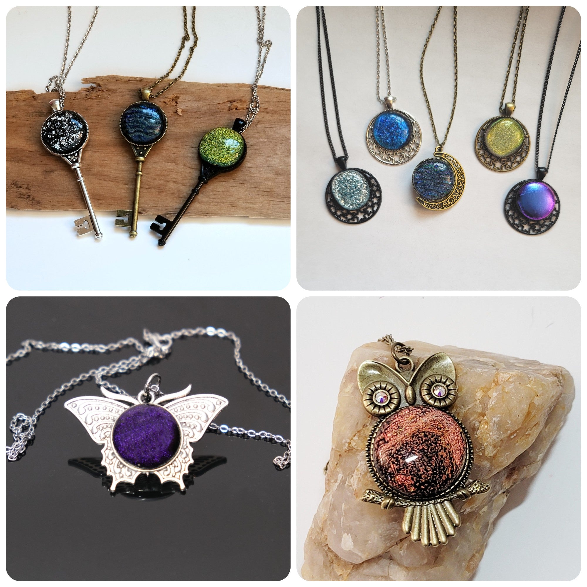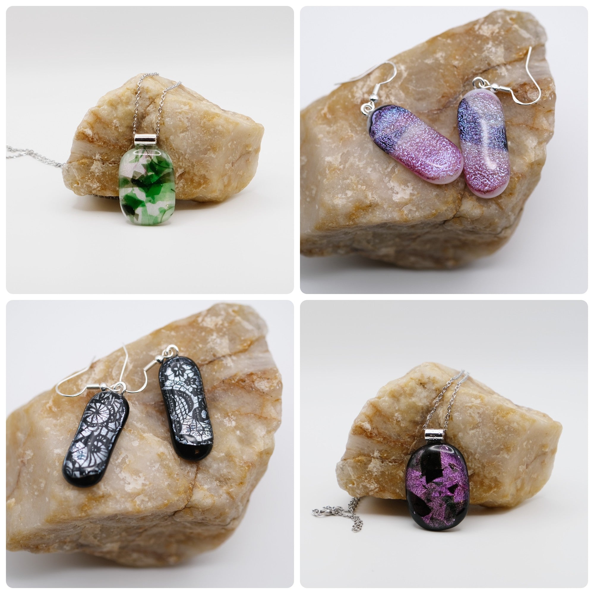bowls, coasters, slumped bottles, and jewelry that allows customers to find